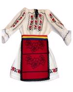 Papusa confectionata din material textil si plastic, imbracata in costum traditional in diverse culori cusut manual.