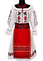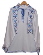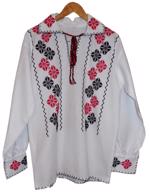 camasa baietei traditional romaneasca din panza de bumbac brodata manual cu motive populare mov si negru, cu guler normal , siret la gat si manseta.