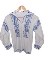 Camasa din panza de bumbac gros( matador) alba, cusuta manual cu fir negru.