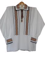 Camasa din panza de bumbac gros ( matador) alba, cusuta manual cu fir albastru si negru.