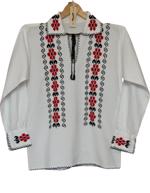 Camasa populara pentru barbati, croita din panza de bumbac goasa, cu guler, nasturi si manseta si dantela alba. Modelul este cusut cu fir de PNA, rosu, galben, albastru si negru.