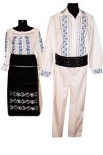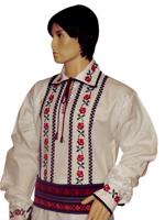 Camasa populara de barbati cusuta manual cu fir albastru deschis si inchis.