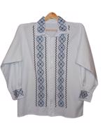 Camasa din panza de bumbac gros ( matador) alba, cusuta manual cu fir rosu si negru.