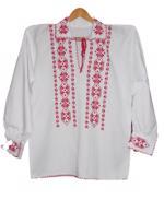 Camasa populara din panza de bumbac gros ( matador) alba, cusuta manual cu fir rosu si negru.