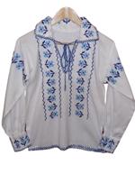 Camasa din panza de bumbac gros ( matador) alba, cusuta manual cu fir negru.