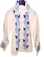 Camasa barbati traditional romaneasca din panza de bumbac brodata manual cu motive geometrice cu rosu si negru , cu guler normal, nasturi , si manseta.