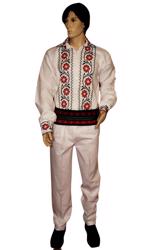 Această cămașă populară tradițională pentru bărbați este realizată din pânză albă de bumbac de înaltă calitate, cusută manual cu mare atenție la detalii. Modelul cusut manual pe această cămașă prezintă motive traditionale cu rosu, galben si verse, creând un design deosebit și unic.