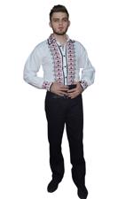 Cămașă tradițională pentru bărbați cu motive florale in nuante de albastru.