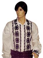 Această cămașă tradițională pentru bărbați este confecționată dintr-o pânză albă de bumbac de înaltă calitate, cusută manual cu mare atenție la detalii. Gulerul și închiderea cu nasturi negri pe piept adaugă o notă de eleganță și stil acestei piese vestimentare. Mâneca cu mansetă completează perfect designul cămășii, oferind un aspect elegant și sofisticat. Modelul cusut manual pe această cămașă prezintă motive tradiționale de culoare roșie și neagră, cusute pe guler, piept și mansetă, oferind o notă autentică și personalitate piesei vestimentare.