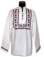 Camasa populara pentru barbati cusuta manual cu fir rosu si negru.