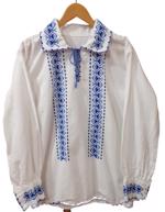 Camasa populara pentru barbati, pe panza alba de bumbac, cusuta manual cu fir negru si rosu.