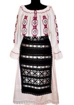 Camasa barbati traditional romaneasca din panza de bumbac brodata manual cu motive populare verde, rosu, galben si negru , cu guler normal, nasturi, insertie de dantela neagra pe langa nasturi, la guler si manseta.