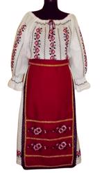 Camasa barbati traditional romaneasca din panza de bumbac brodata manual cu motive populare de culoare rosu si negru, cu guler normal , nasturi si manseta.