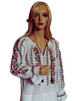Camasa barbati traditional romaneasca din panza de bumbac brodata manual cu motive geometrice cu negru, guler normal, siret la gat si manseta.
