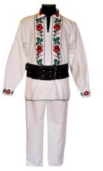 Camasa populara de barbati din panza alba de bumbac brodata manual cu motive florale in culoarea neagra.