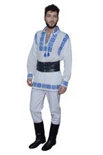 Pantalonii din acest costum popular sunt realizați din doc alb elastic, un material de calitate, durabil și confortabil. Aceștia sunt confecționați cu atenție la detalii și respectând tradiția locală.