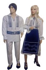 Costum popular de barbati format din camasa traditionala din panza groasa de bumbac (vezi foto in tabel de masuri) brodata manual cu motive populare negru, verde si rosu , cu guler normal, nasturi, insertie de dantela neagra pe langa nasturi, guler si la manseta , pantaloni albi din doc si chimir din piele neagra pe 4 catarame, lat de 15cm.. La comanda puteti aduce modificari camasii, de ex: puteti schimba culoarea broderiei, insertia de dantela care acum este neagra puteti s-o inlocuiti cu una alba, maneca o puteti face dreapta, fara manseta, din guler normal, puteti realiza guler tip tunica, puteti schimba materialul/panza din groasa in subtire, pantalonii puteti sa-i inlocuiti cu unii albi din doc, chimirul il puteti inlocui cu un brau tesut, etc.....