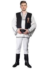 Costum popular barbati format din camasa traditional romaneasca din panza de bumbac brodata manual cu