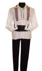 Costum popular barbatesc format din camasa traditional romaneasca din panza de bumbac brodata manual cu