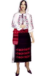 Costum popular de femei format din ie cusuta manual cu motive florale cu negru,