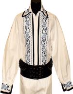 Camasa din panza de bumbac subtire( albinita) alba, cusuta manual cu fir verde si negru.