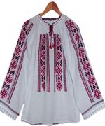 Camasa din panza de bumbac subtire( albinita) alba, cusuta manual cu fir rosu si negru.100% handmade