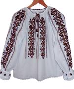 Camasa populara de femei din panza de bumbac cusuta manual cu fir negru.