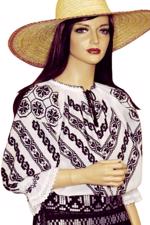 traditionale romanesti cu negru, maneca 3/4 cu insertie de dantela neagra din bumbac pe margini.