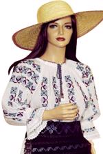 Ie din panza de bumbac alba, cusuta manual cu fir de pna alabstru inchis si deschis.