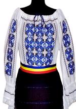 ie traditional romaneasca din panza de bumbac brodata manual cu trandafiri rosii si negru cu maneca ¾ , elastic si insertie de dantela alba