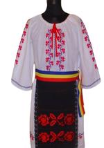 Costum popular format din ie fetita traditional romaneasca din panza de bumbac brodata manual cu motive