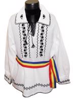 Camasa din panza de bumbac subtire( albinita) alba, cusuta manual cu fir negru.